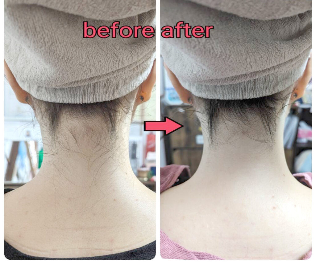 襟足は、髪の毛との境目にあたり、意外と産毛が生えやすい部位です。